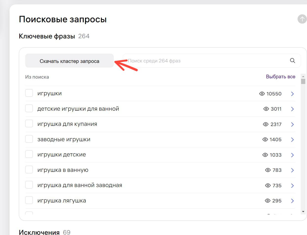 Посмотреть можно в блоке «по каким ключевым словам оставить показы?» внутри РК и на бесплатной странице «Пресеты и Кластеры»