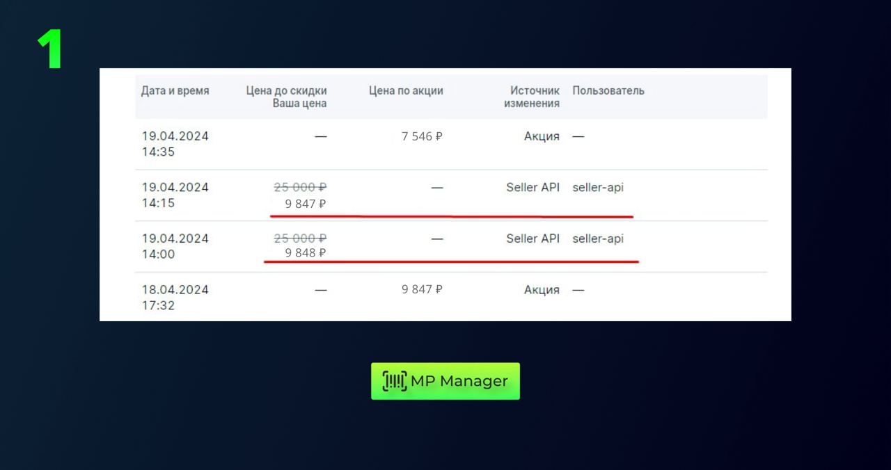 Пример на скриншотах: 1️⃣Сервис рассчитывает и устанавливает верную цену, что видно на скриншоте изменения цен 2️⃣ОЗОН не применяет нужную цену, он оставляет акционную цену