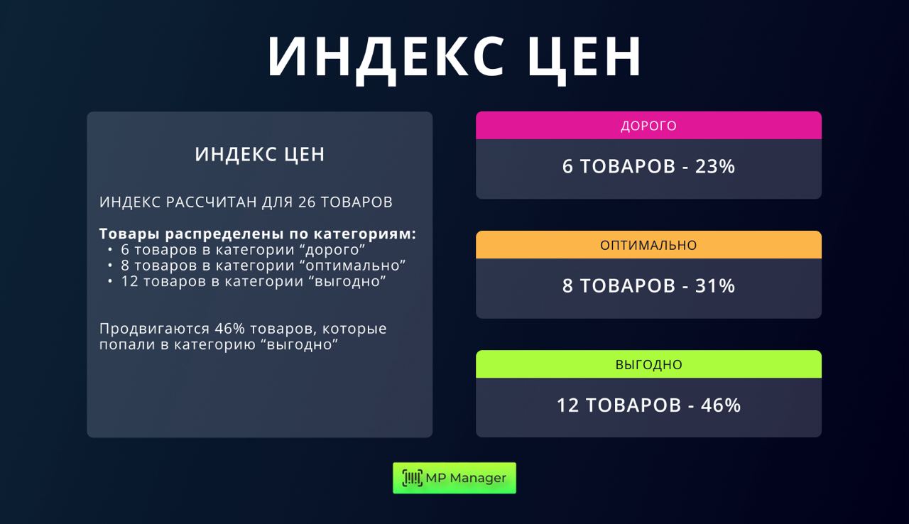 Чем выгоднее цена ваши товары на WB, тем **выше будет ваш индекс цен. **