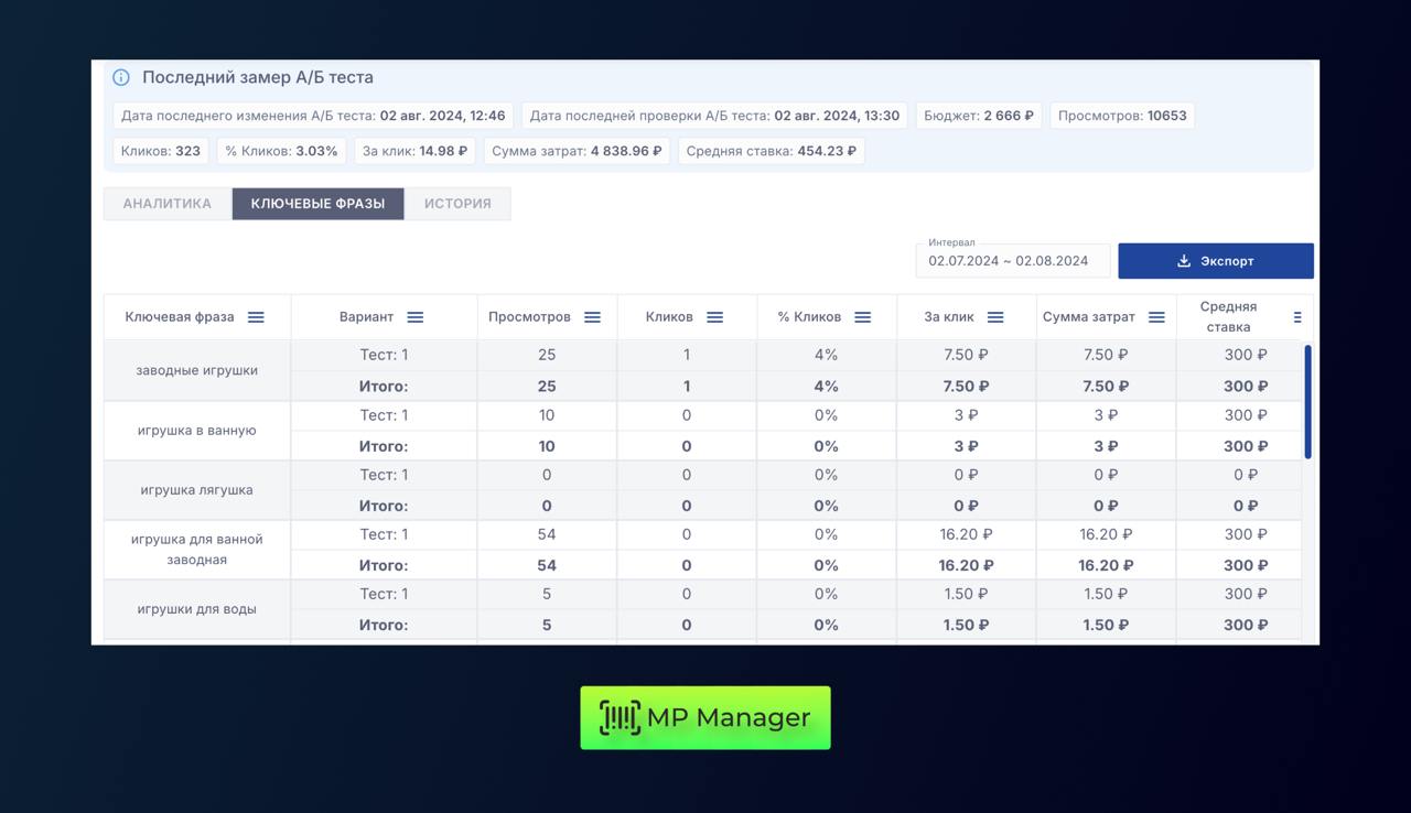 В А/Б ТЕСТАХ теперь отображаются данные отдельно по каждому ключевому слову!📣