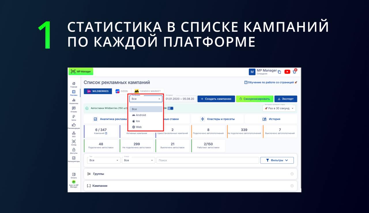 1️⃣Теперь Статистику в кампании и в Списке кампаний можно смотреть отдельно по каждой платформе!