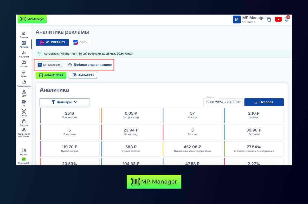 В MP Manager есть аналитика сразу по нескольким кабинетам🔥🔥🔥