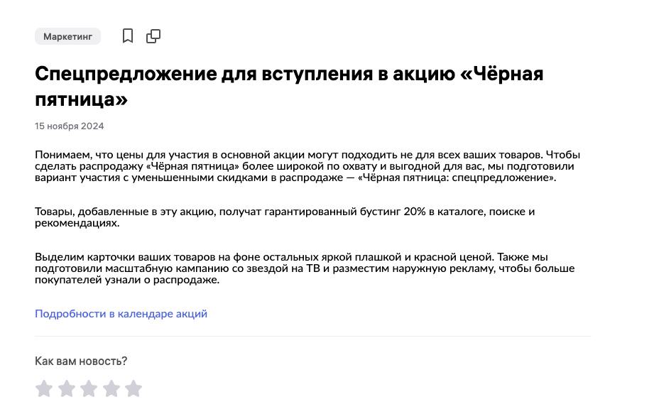 WB запускает акцию «Чёрная пятница: спецпредложение» с уменьшенными скидками, чтобы помочь продавцам участвовать с большим числом товаров.