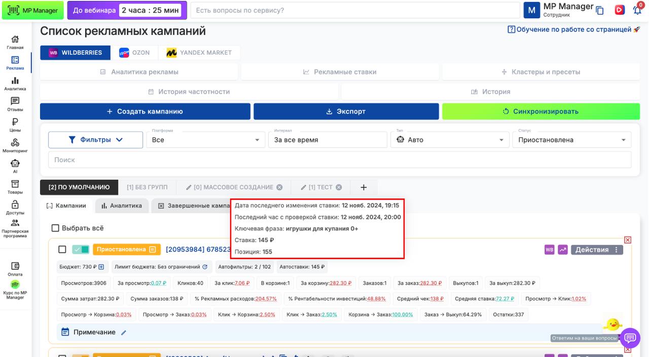 ✔️****Для Автоставок - видите, когда ставка менялась или проверялась, по какому ключу была выставлена, за какую ставку и какую позицию занимает.