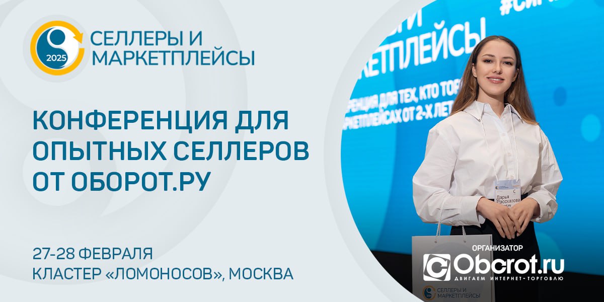 Конференция "Селлеры и маркетплейсы — 2025" Команда Оборот.ру приглашает селлеров, производителей и бренды с опытом работы на маркетплейсах от 2-х лет.