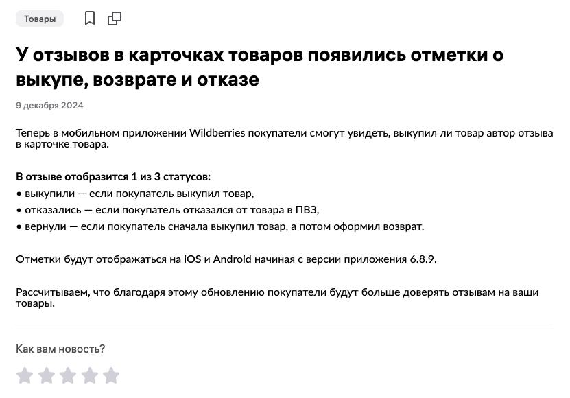 **У отзывов появились отметки о выкупе, возврате и отказе **📣