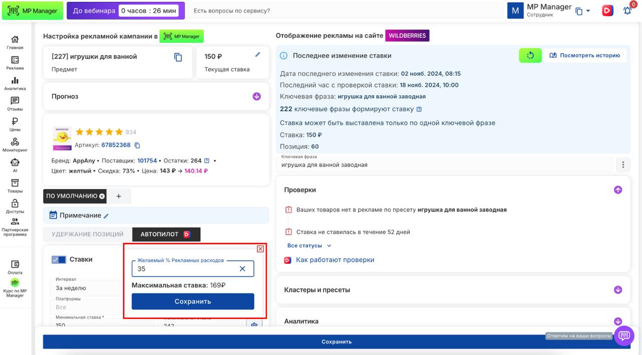 π ΠΠ° ΠΎΡΠ½ΠΎΠ²Π΅ Π΄Π°Π½Π½ΡΡ ΡΡΠ°ΡΠΈΡΡΠΈΠΊΠΈ (Π² Π²Π΅ΡΡ Π½Π΅ΠΉ ΡΠ°ΡΡΠΈ ΠΊΠ°ΠΌΠΏΠ°Π½ΠΈΠΈ) MP Manager Π°Π²ΡΠΎΠΌΠ°ΡΠΈΡΠ΅ΡΠΊΠΈ ΡΠ°ΡΡΡΠΈΡΠ°Π΅Ρ** ΠΌΠ°ΠΊΡΠΈΠΌΠ°Π»ΡΠ½ΡΡ ΡΡΠ°Π²ΠΊΡ. **