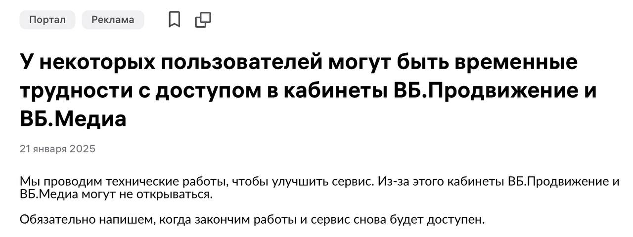 ❗️Могут возникнуть трудности с доступом в ВБ.Продвижении и ВБ.Медиа