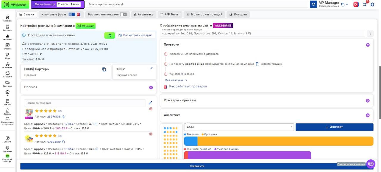 Эти проверки помогут вам: 🔹 Удерживать рекламные позиции в пределах нормы, избегая лишних трат. 🔹 Эффективно управлять ставками без постоянного ручного контроля.