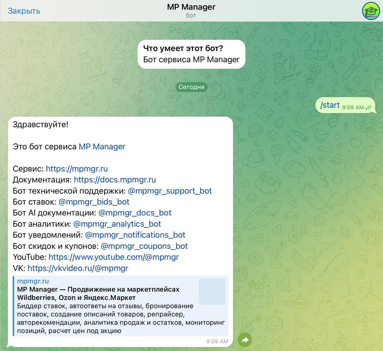 Экономьте время и работайте удобнее! Пробуйте уже сейчас ➡️ @mpmgr_bot**