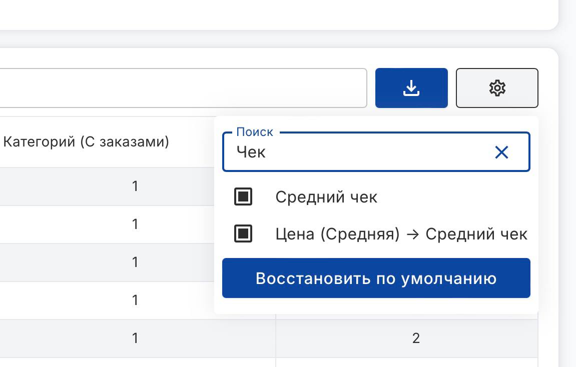 Кроме того, теперь в Аналитике появилась конверсия из цены в средний чек. Она показывает, какую часть от средней цены составляет средний чек.