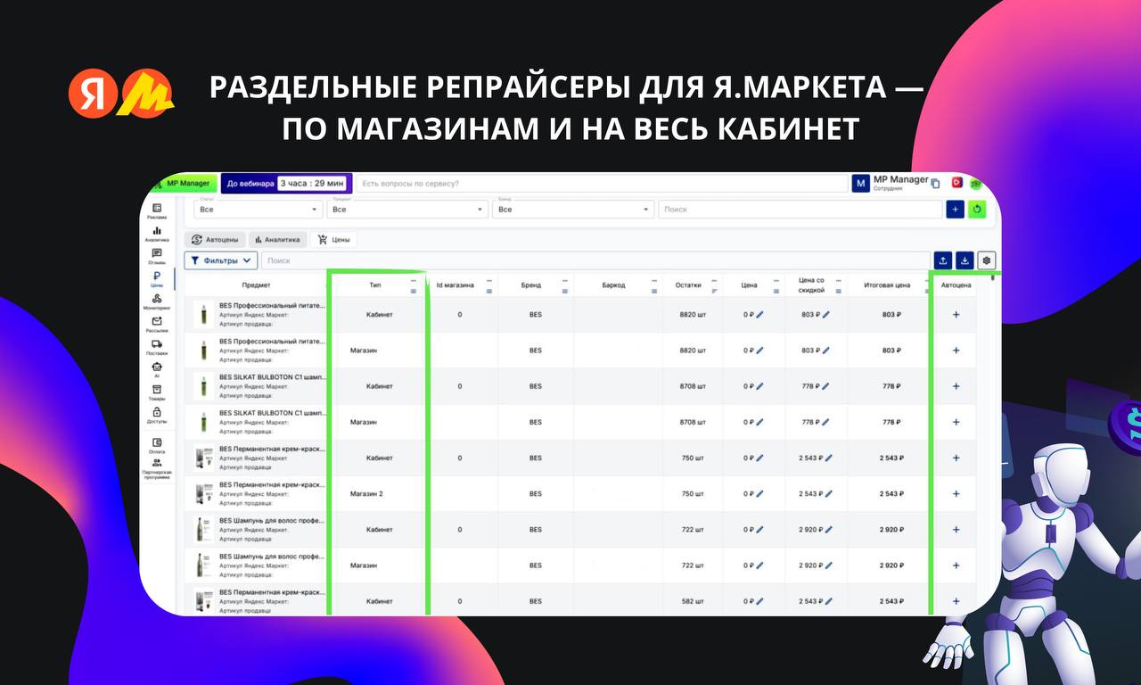 🔥 Обновление в автоценах для Яндекс Маркета — теперь можно создавать отдельные репрайсеры на каждый магазин и на кабинет в целом