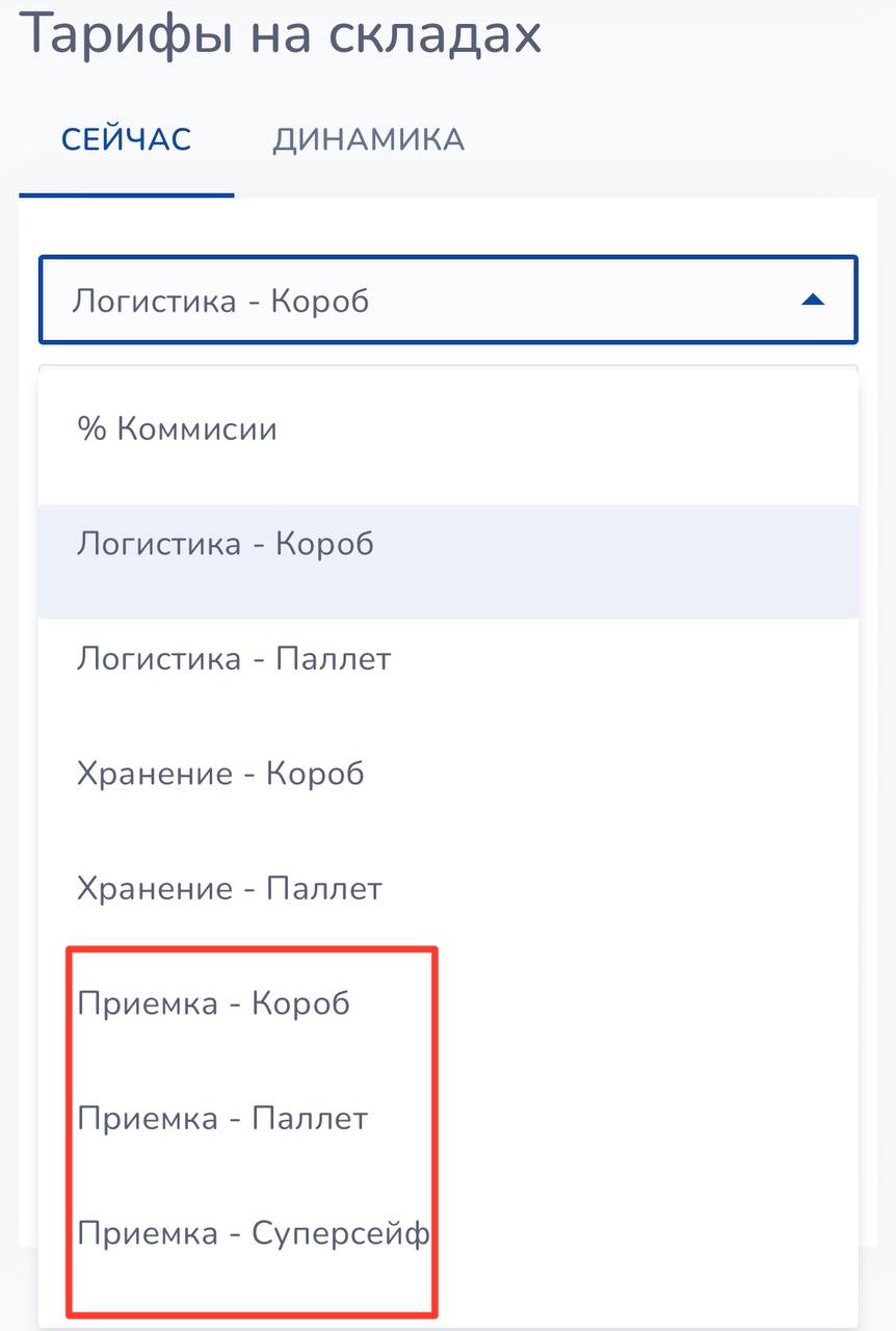 📊 В виджете тарифов на главной странице появились новые режимы - Платная приемка по коробам, паллетам и супер сейфу