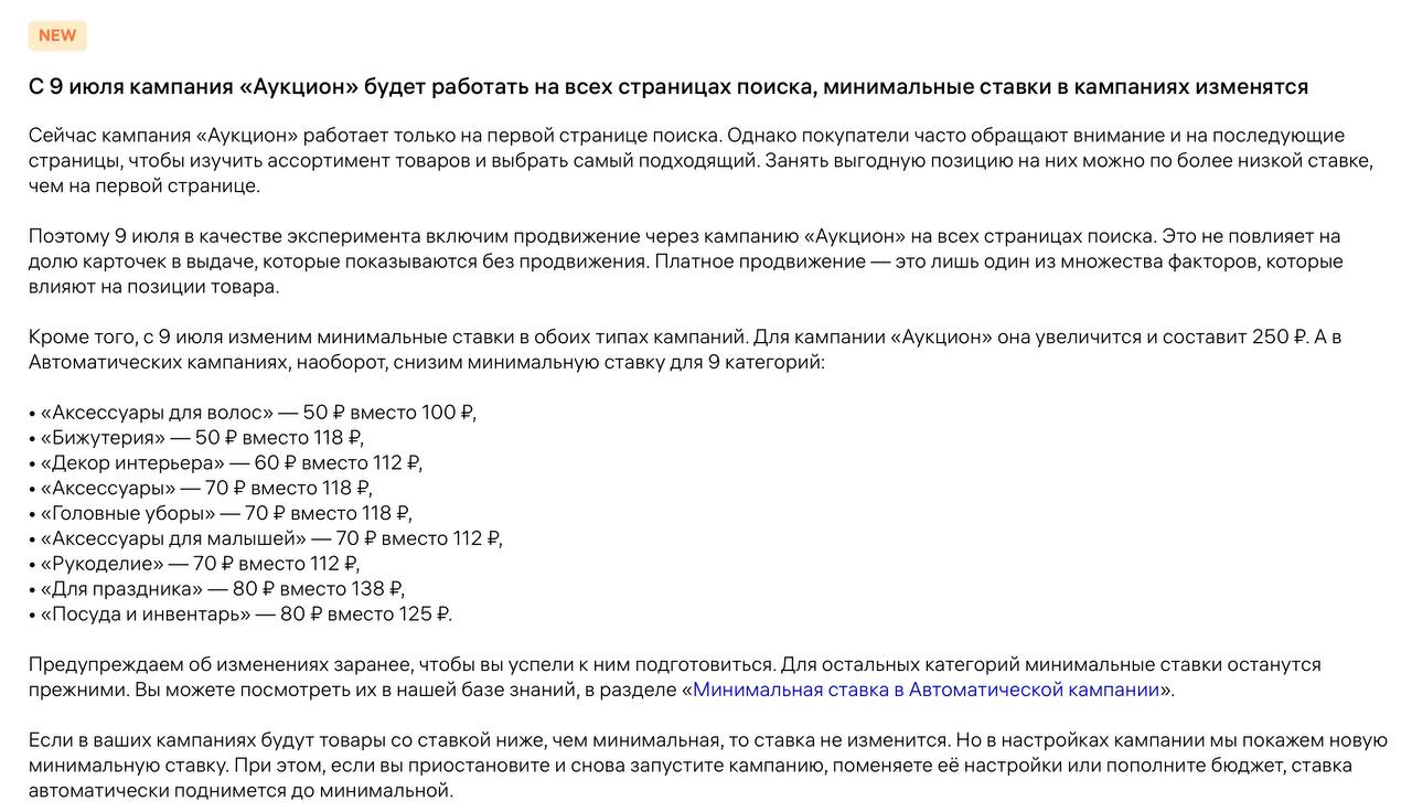 Π’Π°ΠΊΠΆΠ΅ ΠΈΠ·ΠΌΠ΅Π½ΡΡΡΡ ΠΌΠΈΠ½ΠΈΠΌΠ°Π»ΡΠ½ΡΠ΅ ΡΡΠ°Π²ΠΊΠΈ: β Π² Β«ΠΡΠΊΡΠΈΠΎΠ½Π΅Β» β 250 β½ β Π² ΠΠ²ΡΠΎΠΌΠ°ΡΠΈΡΠ΅ΡΠΊΠΈΡ ΠΊΠ°ΠΌΠΏΠ°Π½ΠΈΡΡ ΡΠ½ΠΈΠΆΠ΅Π½Ρ ΡΡΠ°Π²ΠΊΠΈ Π² 9 ΠΊΠ°ΡΠ΅Π³ΠΎΡΠΈΡΡ (Π½Π°ΠΏΡΠΈΠΌΠ΅Ρ, Β«ΠΠΈΠΆΡΡΠ΅ΡΠΈΡΒ» β Π΄ΠΎ 50 β½, Β«ΠΠΎΡΡΠ΄Π°Β» β Π΄ΠΎ 80 β½). ΠΠΎΠ»Π½ΡΠΉ ΡΠΏΠΈΡΠΎΠΊ β Π² Π±Π°Π·Π΅ Π·Π½Π°Π½ΠΈΠΉ WB.