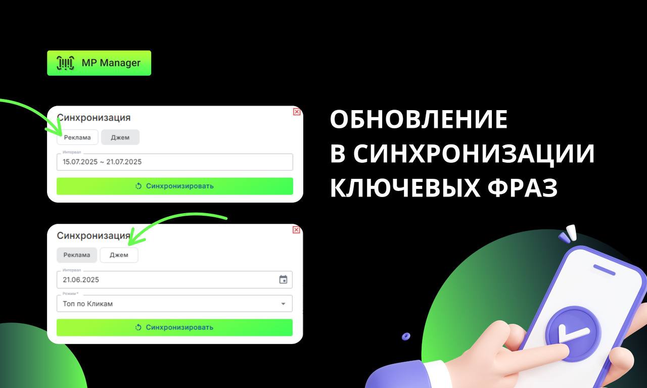 βš«οΈΠ’ΠΌΠ΅ΡΡ‚ΠΎ старых Π²ΠΊΠ»Π°Π΄ΠΎΠΊ «Из API WBΒ» ΠΈ «Из MP ManagerΒ» β€” Ρ‚Π΅ΠΏΠ΅Ρ€ΡŒ Π΄Π²Π° Π½ΠΎΠ²Ρ‹Ρ… Ρ€Π΅ΠΆΠΈΠΌΠ°: β€’ Π Π΅ΠΊΠ»Π°ΠΌΠ° β€” классичСская синхронизация Π΄Π°Π½Π½Ρ‹Ρ… ΠΈΠ· Ρ€Π΅ΠΊΠ»Π°ΠΌΠ½ΠΎΠ³ΠΎ ΠΊΠ°Π±ΠΈΠ½Π΅Ρ‚Π° β€’ Π”ΠΆΠ΅ΠΌ β€” Π΄ΠΎΠ±Π°Π²Π»Π΅Π½ ΠΏΠΎΠ»Π½ΠΎΡ†Π΅Π½Π½Ρ‹ΠΉ сбор ΠΊΠ»ΡŽΡ‡Π΅Π²Ρ‹Ρ… Ρ„Ρ€Π°Π· ΠΈΠ· сСрвиса Π°Π½Π°Π»ΠΈΡ‚ΠΈΠΊΠΈ Wildberries