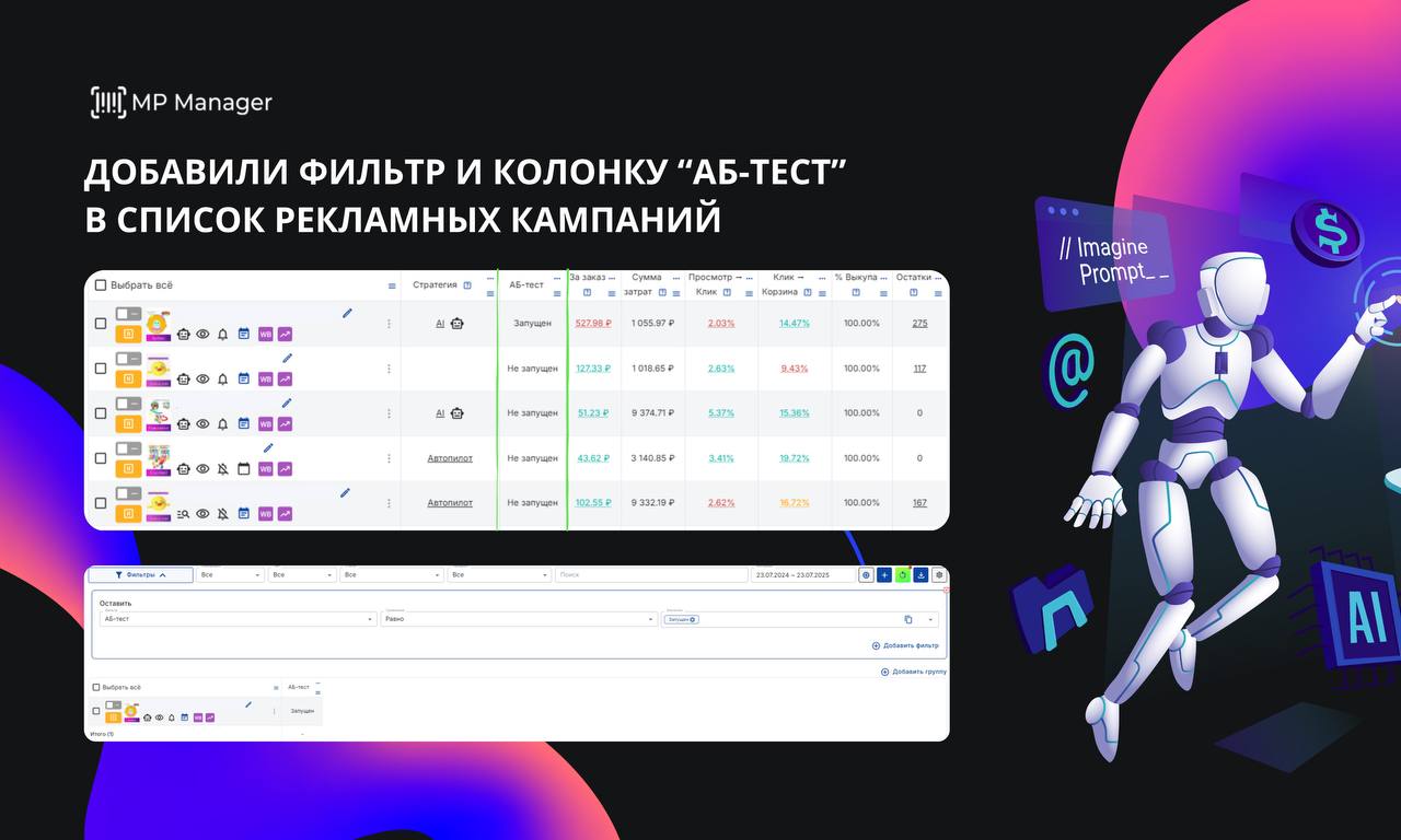 🆕 АБ-тесты под контролем — обновление в списке рекламных кампаний