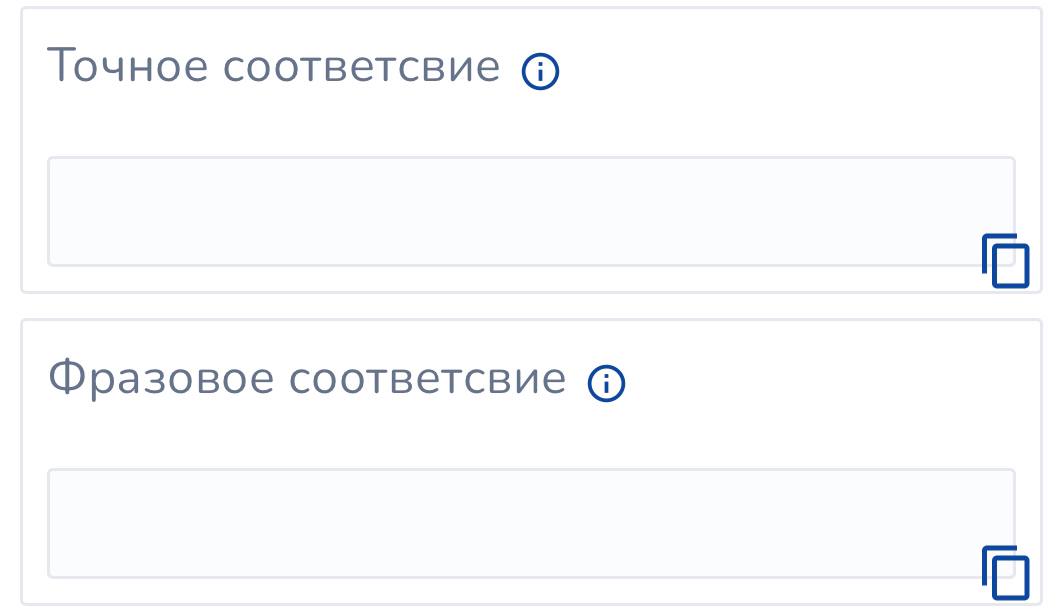 1️⃣ Если ввести фразу в поле точного соответствия, не будет добавлена именно эта фраза. Например фраза «белые кроссовки для бега» в таком случае сможет быть добавлена