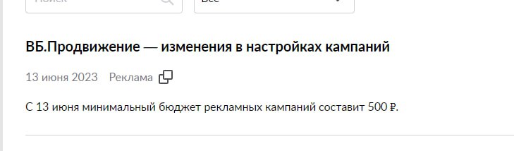 ⚡️ Wildberries сообщил что с 13 июня минимальный бюджет рекламных кампаний составит 500₽