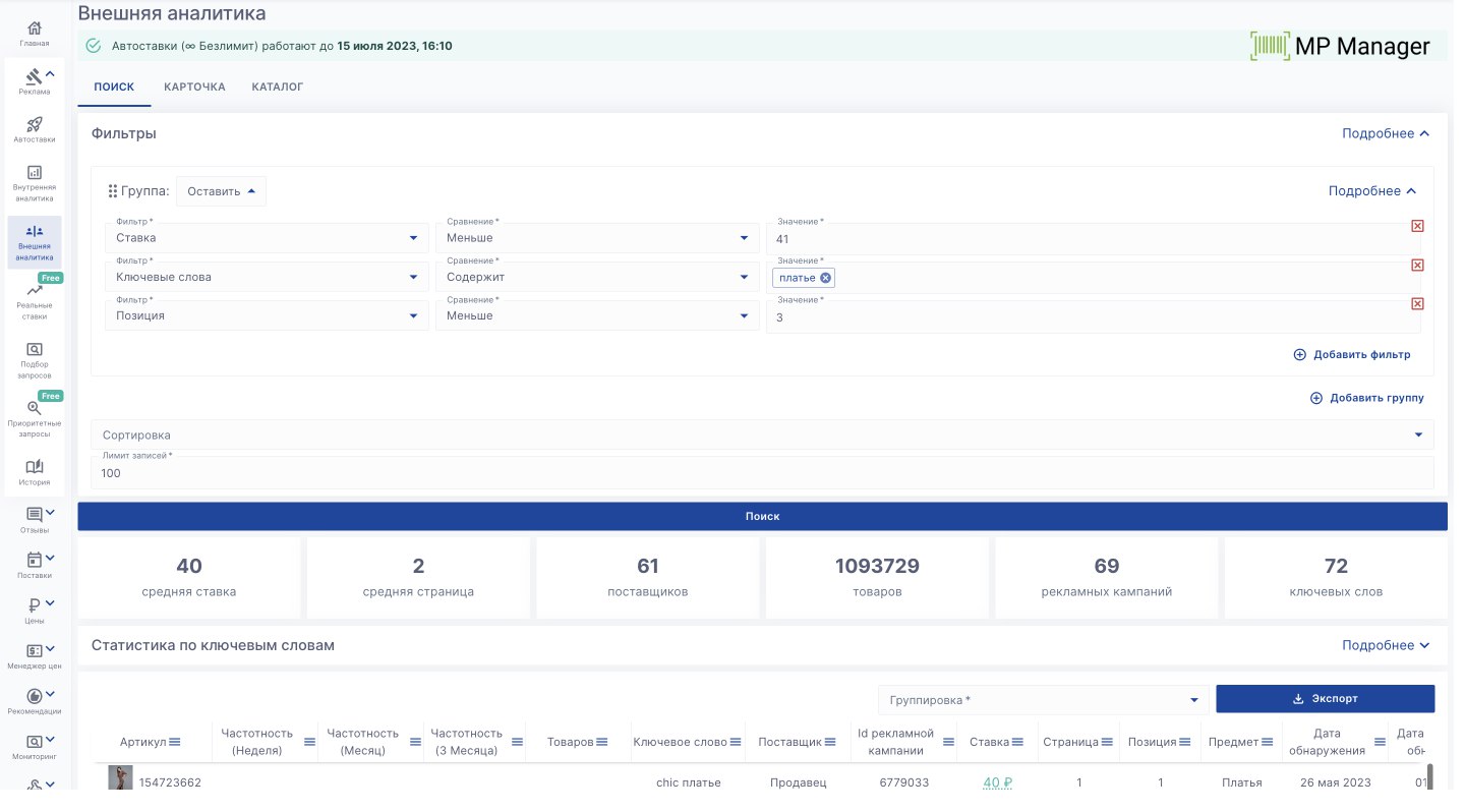 Например: • Ставка - меньше - 41 • Ключевое слово - содержит - ваш товар • Позиция - меньше - 3