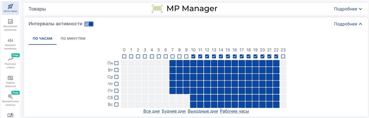 🔥 **Также можно настраивать интервалы поминутно