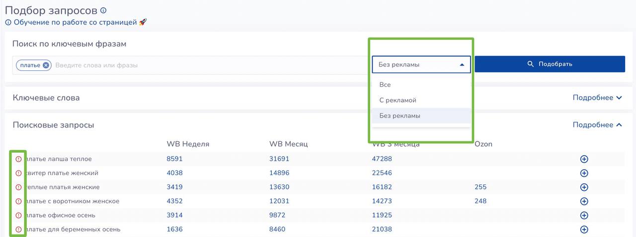 Π ΡΠ°Π·Π΄Π΅Π»Π΅ ΠΏΠΎΠ΄Π±ΠΎΡ Π·Π°ΠΏΡΠΎΡΠΎΠ² ΡΠ΅ΠΏΠ΅ΡΡ ΠΌΠΎΠΆΠ½ΠΎ ΠΏΠΎΠ΄ΠΎΠ±ΡΠ°ΡΡ ΠΊΠ»ΡΡΠΈ Π΄Π»Ρ Π·Π°ΠΏΠΎΠ»Π½Π΅Π½ΠΈΡ ΠΊΠ°ΡΡΠΎΡΠΊΠΈ Π½Π΅ ΡΠΎΠ»ΡΠΊΠΎ ΠΏΠΎ ΡΠ°ΡΡΠΎΡΠ½ΠΎΡΡΠΈ, Π½ΠΎ ΠΈ ΠΏΠΎ Π½Π°Π»ΠΈΡΠΈΡ ΠΈΠ»ΠΈ ΠΎΡΡΡΡΡΡΠ²ΠΈΡ Π² Π½ΠΈΡ ΡΠ΅ΠΊΠ»Π°ΠΌΡπ₯