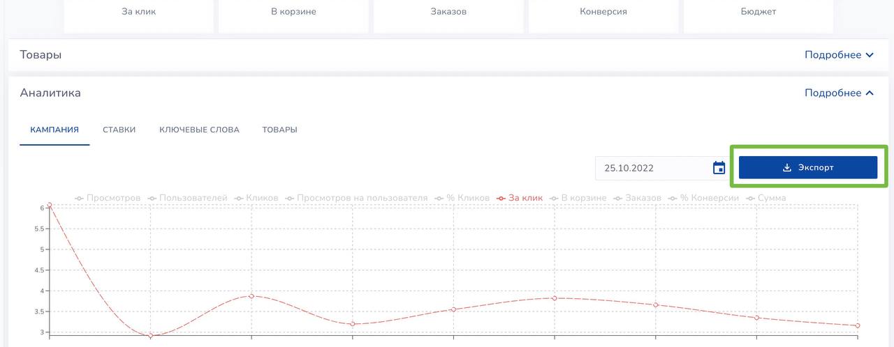 **✅ Экспорт аналитики на странице рекламных кампаний вернулся с доработок и стал ещё лучше и информативнее ** Экспорт доступен как **для общей аналитики по кампании, **так и для всех новых вкладок аналитики: • Изменения ставок • По ключевым словам • По товарам