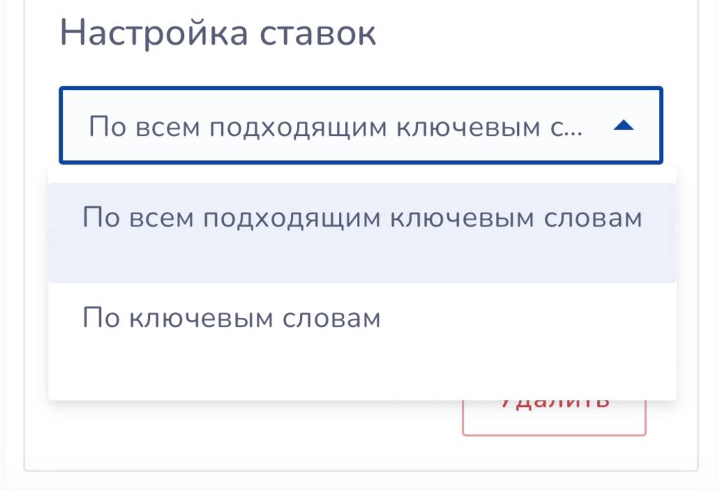 В поле можно ввести одно или несколько приоритетных слов, по которым бот будет выставлять ставки. Либо можно оставить значение по умолчанию (лучшее кллючевое слово), тогда ставка будет выставляться с учетом всех ключевых слов в кампании