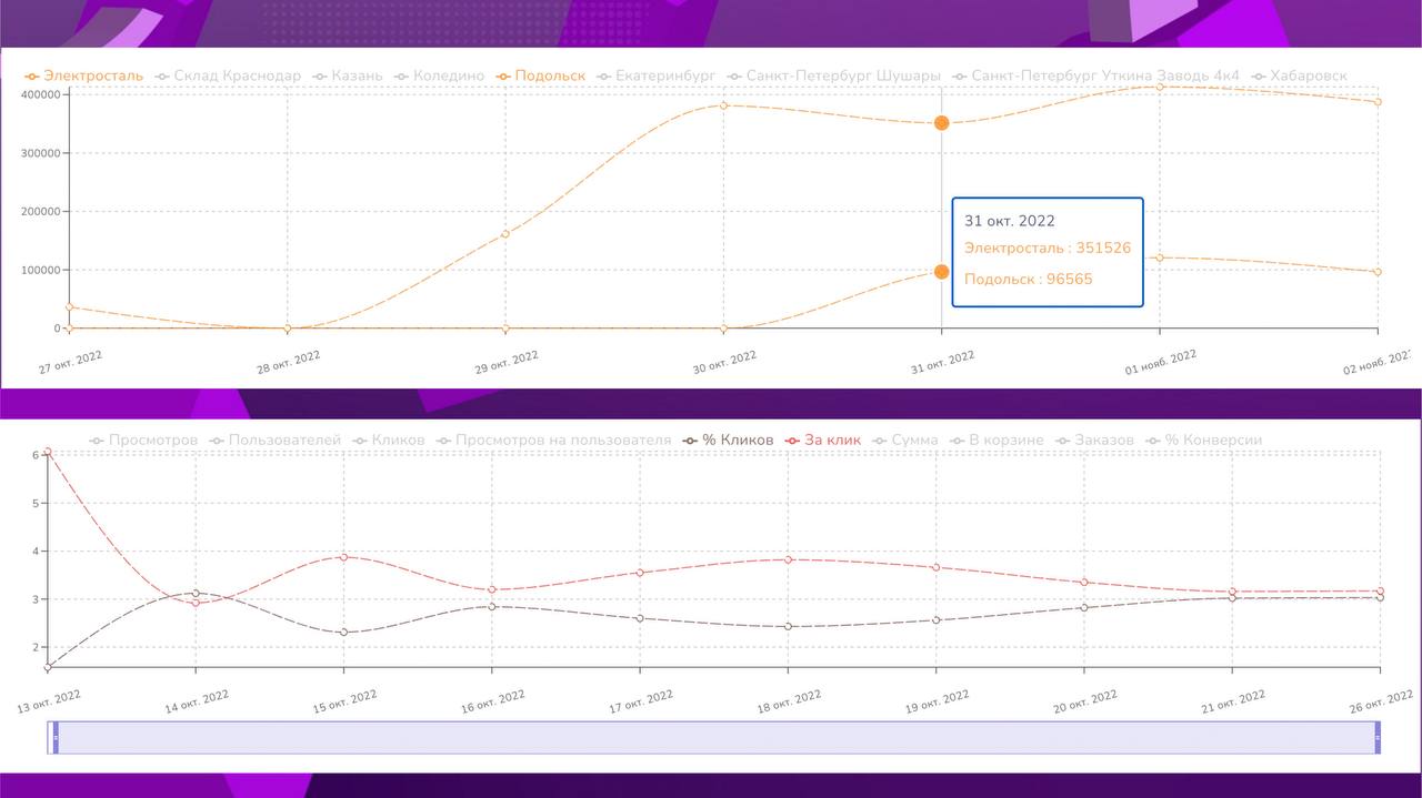 π Π Π½Π°ΡΠΈΡ Π³ΡΠ°ΡΠΈΠΊΠ°Ρ ΠΌΠΎΠΆΠ½ΠΎ ΠΏΡΠΎΡΠΌΠ°ΡΡΠΈΠ²Π°ΡΡ ΡΡΠ°Π·Ρ Π½Π΅ΡΠΊΠΎΠ»ΡΠΊΠΎ ΠΌΠ΅ΡΡΠΈΠΊ, Π½Π°ΠΏΡΠΈΠΌΠ΅Ρ Π½Π° ΡΡΡΠ°Π½ΠΈΡΠ΅ ΡΠ΅ΠΊΠ»Π°ΠΌΠ½ΡΡ ΠΊΠ°ΠΌΠΏΠ°Π½ΠΈΠΉ ΠΈΠ»ΠΈ Π² Π»ΠΈΠΌΠΈΡΠ°Ρ ΠΏΠΎ ΡΠΊΠ»Π°Π΄Π°ΠΌ.