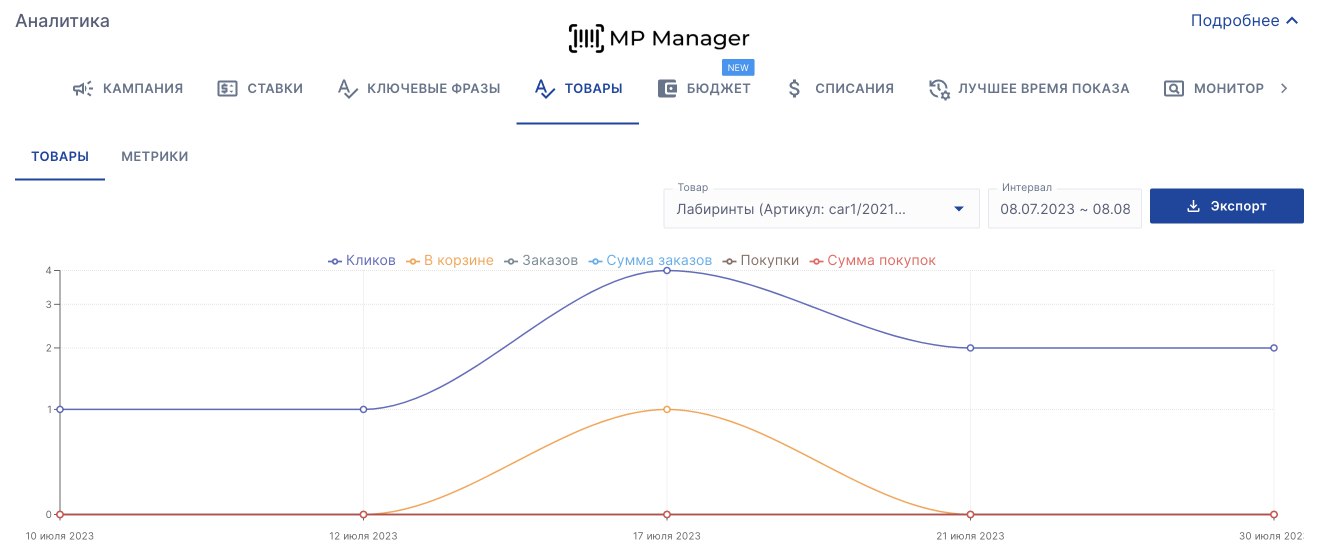 Уже доступны графики по каждому товару в кампании за каждый день по: ✔️ Кликам ✔️ Заказам ✔️ Покупкам ✔️ Товарам в корзине ✔️ Сумме заказов ✔️ Сумме покупок