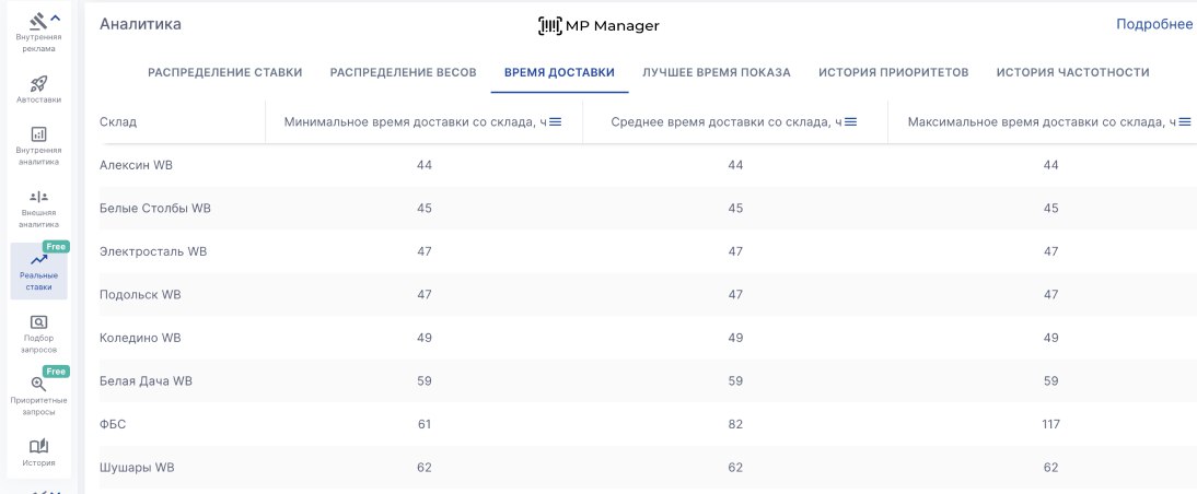 Находите склады с самой быстрой доставкой и делайте поставки на них**