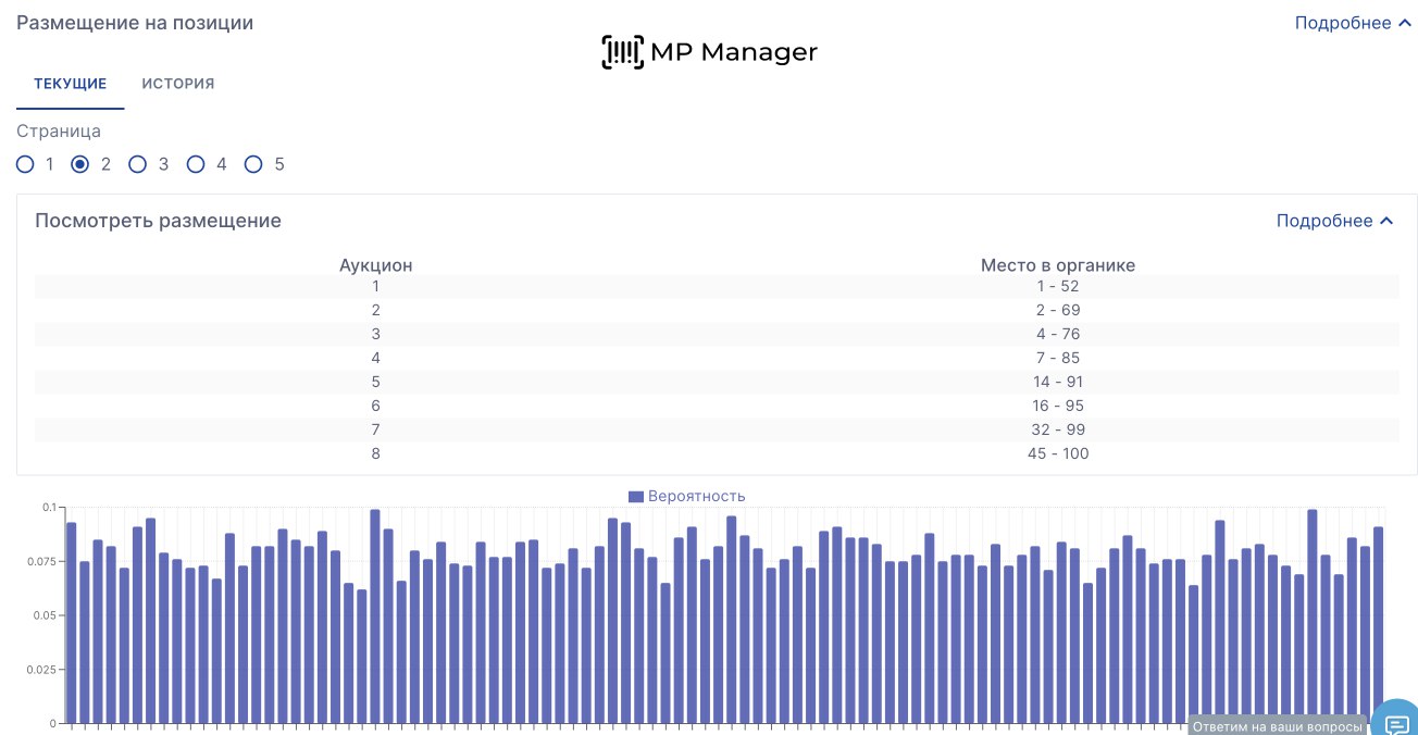В MP Manager вы можете посмотреть не только актуальное количество мест на странице, но и **историю изменений и вероятность попадания на позиции **