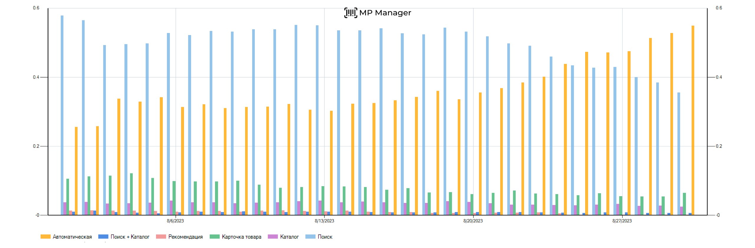 На графиках видно, что ВБ с Авторекламы сейчас зарабатывает больше, чем с поиска!
