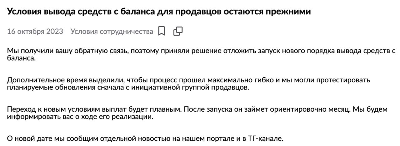 ⚡️WB отложил решение о выводе денег с баланса с задержкой в 7 дней