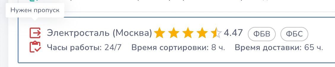 🌐 На странице склады добавили сортировку по типу склада - ФБВ, ФБС, СЦ, ПВЗ Также по каждому складу есть возможность увидеть платная ли приемка и нужен ли пропуск