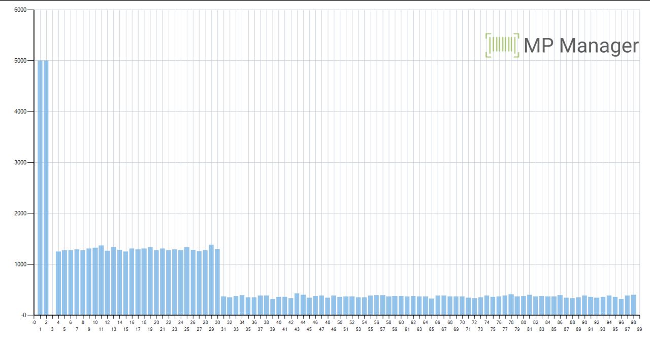- Далее плотность падает, то есть с 10 по 14 позиции в аукционе размещаются равномерно с 31 по 98 место в органике.