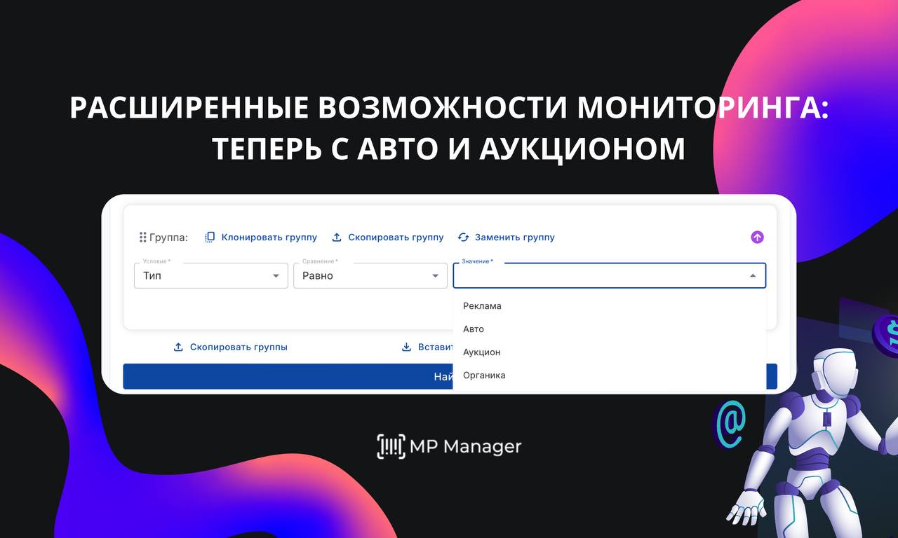 Мы продолжаем совершенствовать MP Manager, делая его ещё удобнее и функциональнее. В этот раз мы добавили новые типы данных в Мониторинг — Авто и Аукцион. Теперь ваш анализ станет ещё точнее, а работа с данными — более гибкой!