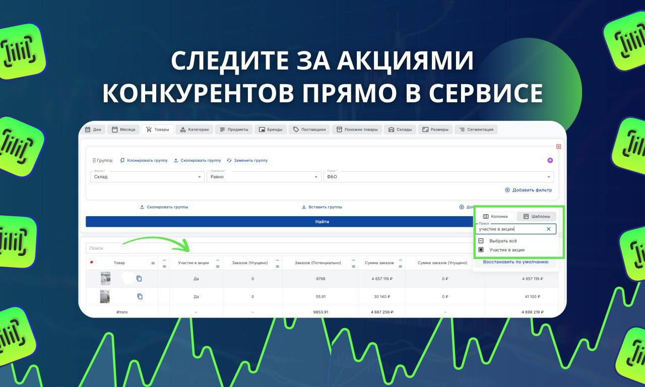 🔹Колонка «Участие в акции» Появилась в табах «Товары» и «Похожие товары» — теперь вы сразу видите, какие товары участвуют в акциях маркетплейса.