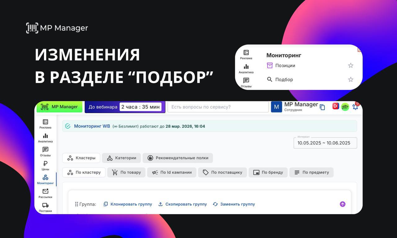 Подбор — обновлённый раздел в MP Manager ⚙️