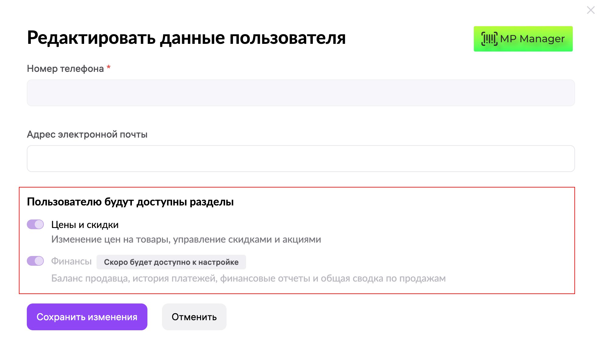 WB только идет в сторону разделения разрешений, скоро будут доступны новые разделы, а в MP Manager уже сейчас вы можете использовать гибкую систему работы с сотрудниками🔥