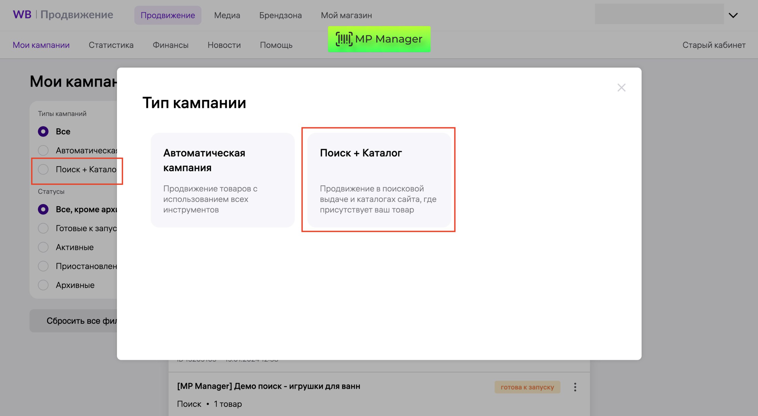 ⚡️ВБ добавил в новый кабинет кампании Поиск+Каталог