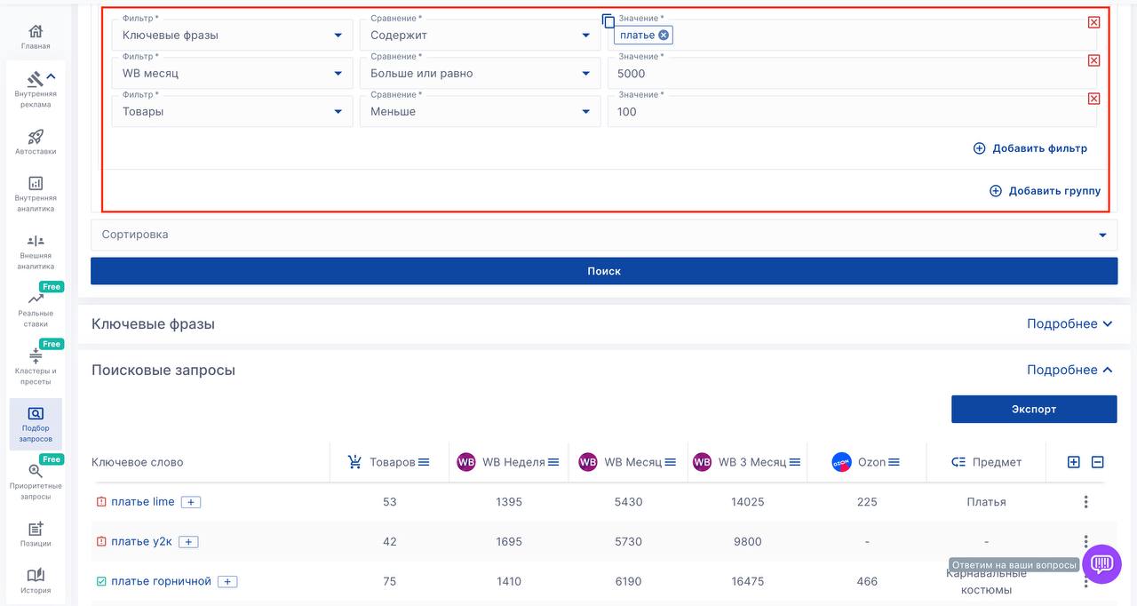 Теперь у вас есть возможность: ✔️ ввести артикулы товаров конкурентов ✔️ выбрать больше или равно ✔️ ввести 1 или другое значение