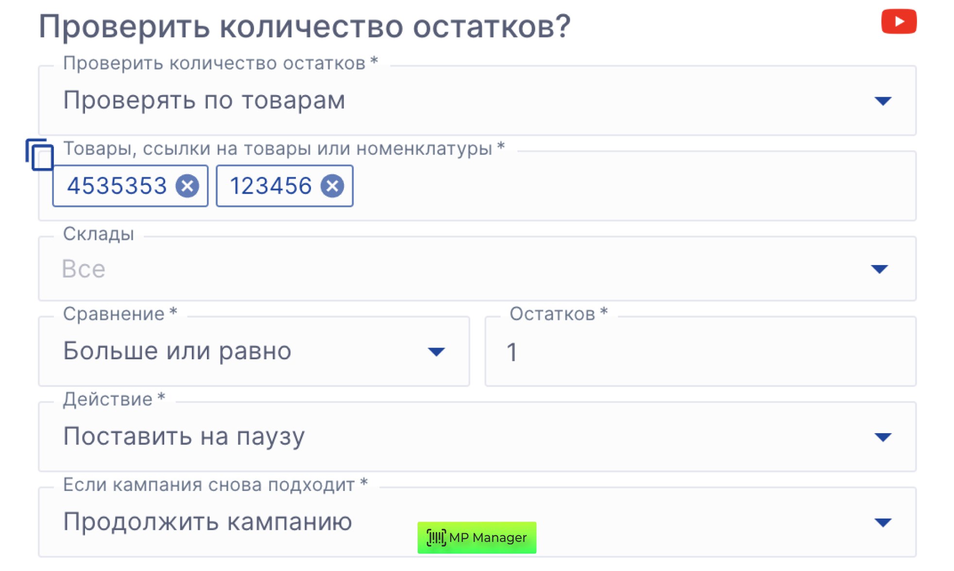 Тогда если у конкурента есть остатки, то кампания будет на паузе, а если остатки закончатся, кампания вновь запустится.