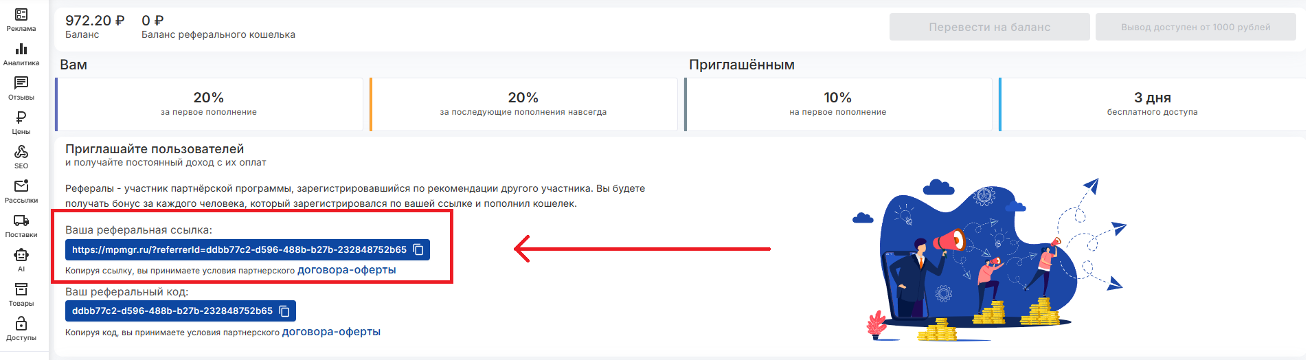 Как получить реферальный код для приглашения пользователей